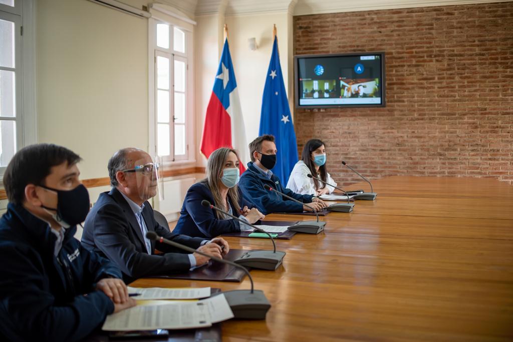 Punta Arenas, 19 noviembre 2020. Una positiva reunión realizó hoy la Intendenta de Magallanes, Jenniffer Rojas, junto al Alcalde de Punta Arenas, Claudio Radonich; la Seremi de Desarrollo Social y Familia, Liz Casanueva y el concejal Germán Flores, la que dio cuenta del avance del proyecto que busca iluminar la Ruta 9 Norte, hasta el aeropuerto de la capital regional.